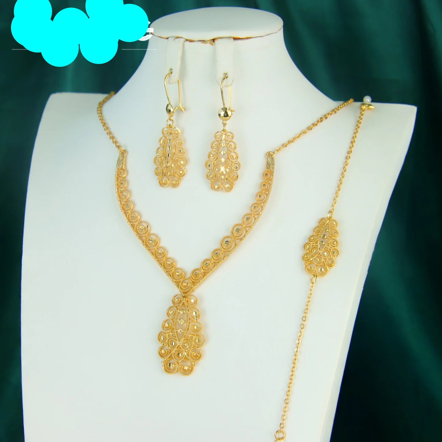Classic Jewelry Set 21k Gold Plated Necklace Bracelet Earrings