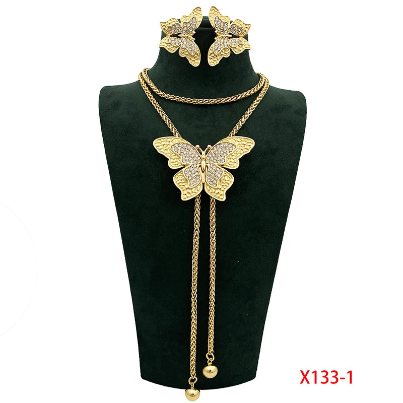 Elegant Butterfly Jewelry Long Necklace Earring Set Adjustable Length