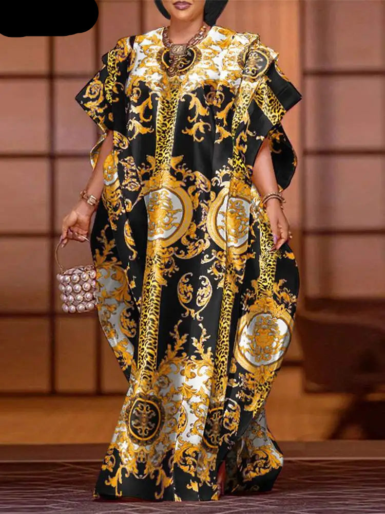 Plus Size Elegant Sexy Printed Patchwork Bat-wing Sleeve
