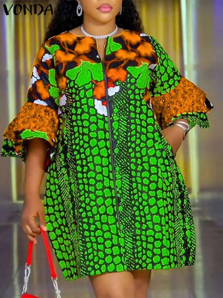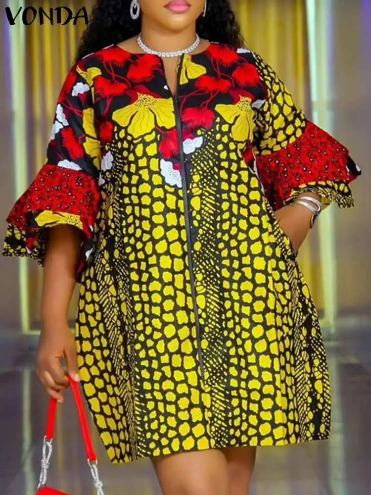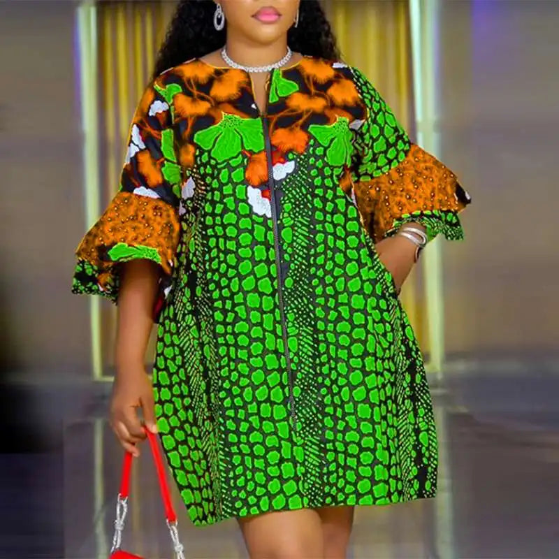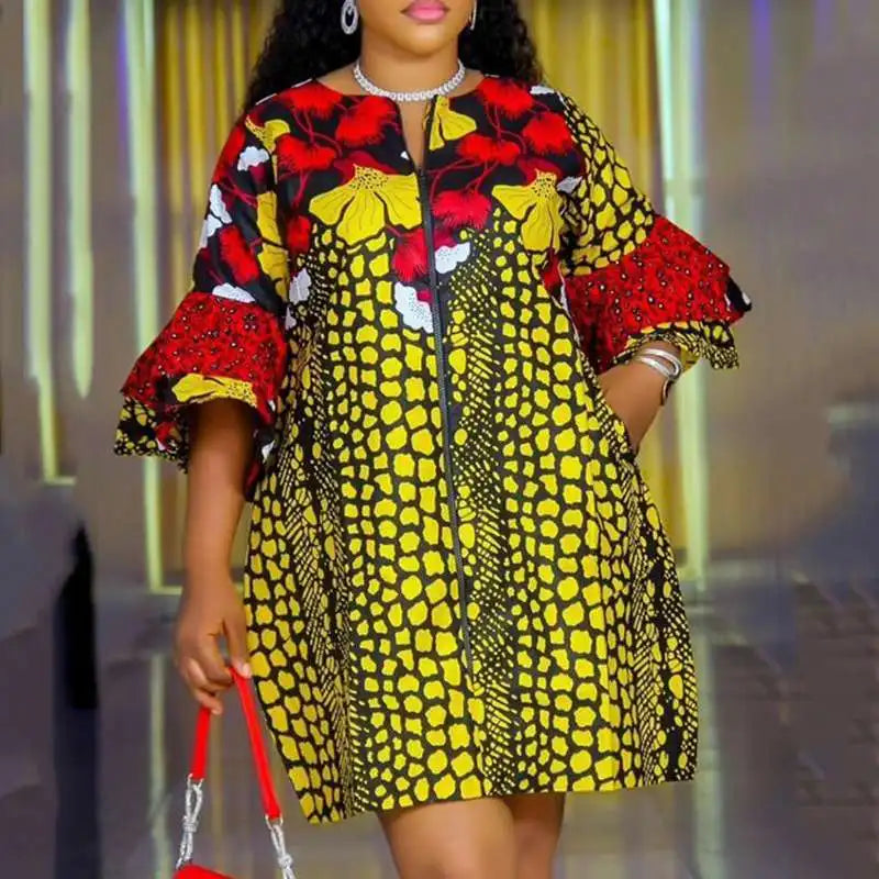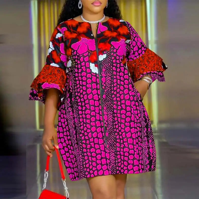 Plus Size Short Dress Flare Sleeve Party Sundress