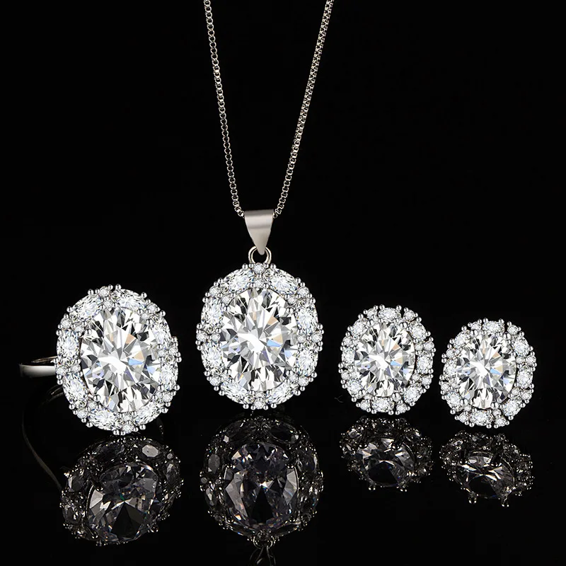 Set Ring Earrings Necklace with Zircon Gemstone