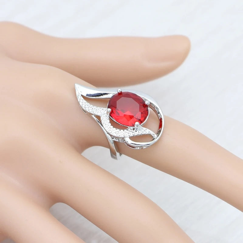 Silver Bridal Jewelry Set Open Ring Earrings Pendant Necklace Kit Free Jewelry Box