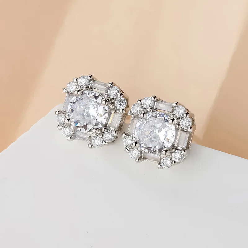 Silver Jewelry Sets Ring Stud Earrings Pendant Necklace with Zircon Accessories
