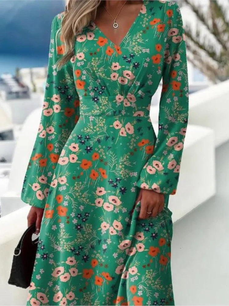 Slim Fit Fashionable Dress With Flared Sleeves Sexy V-neck Long Sleeved